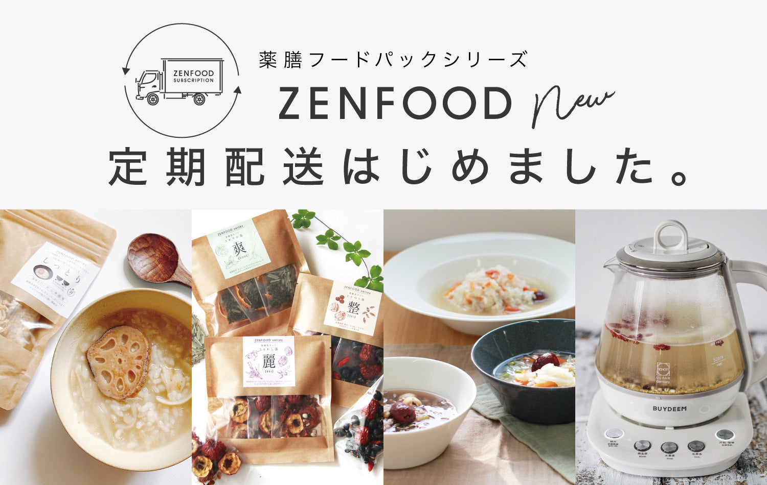 続けることに意味がある。「今日何を食べるか。」毎日の食事で私たちの身体は作られます。薬膳を手軽に簡単に続けてほしい。ZENFOOD薬膳フードパックを毎月ご自宅へお届けする定期便をご用意しました。ぜひお得に薬膳ライフをお楽しみください。