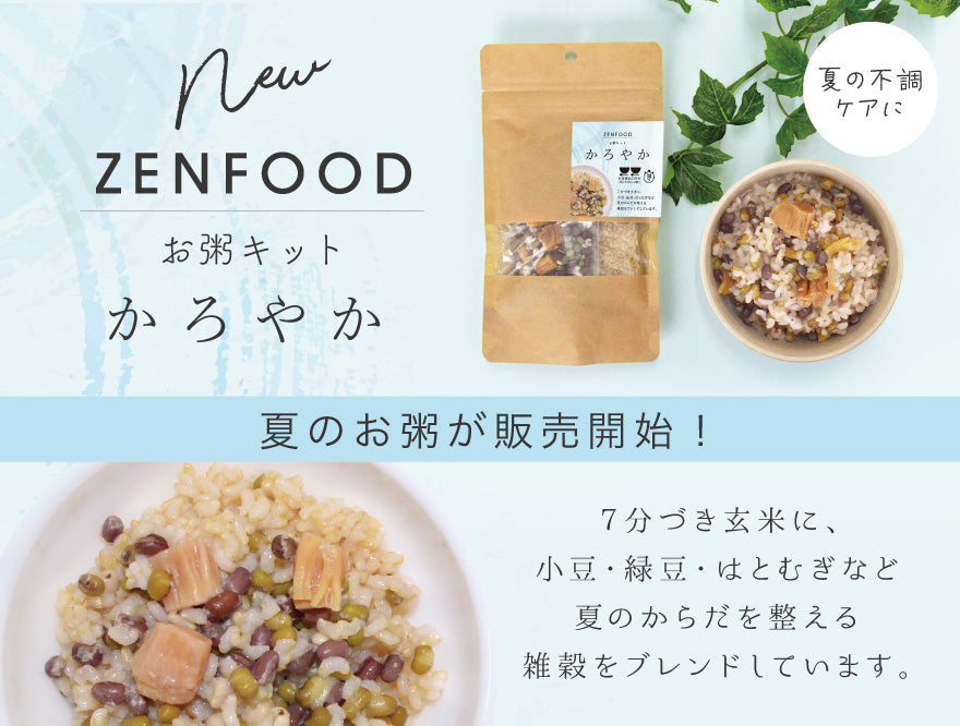 「陰陽五行/ 肝・心・脾・肺・腎」薬膳の考えを基に、国産乾燥野菜等と7 分づき玄米を合わせたおかゆキットです。生米から炊いたおかゆは胃腸にやさしく、疲れた心とカラダのバランスを整えます。