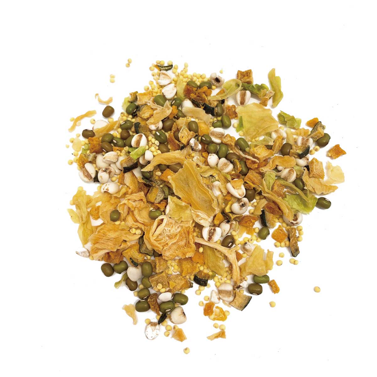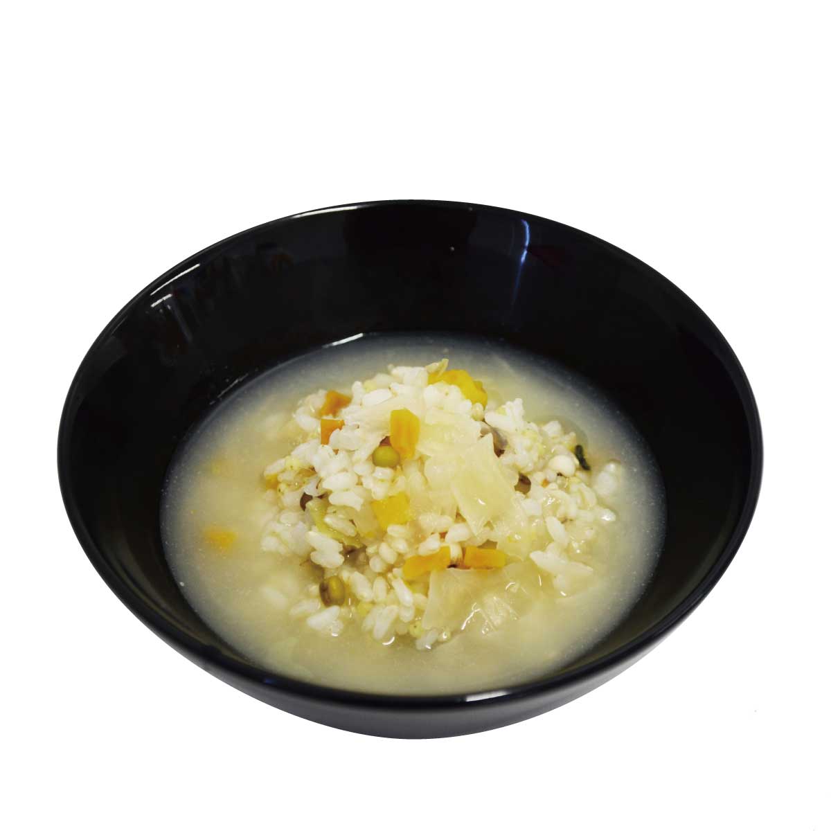 - 原材料:7分づき玄米、かぼちゃ、はとむぎ、緑豆、もちきび、キャベツ、たまねぎ