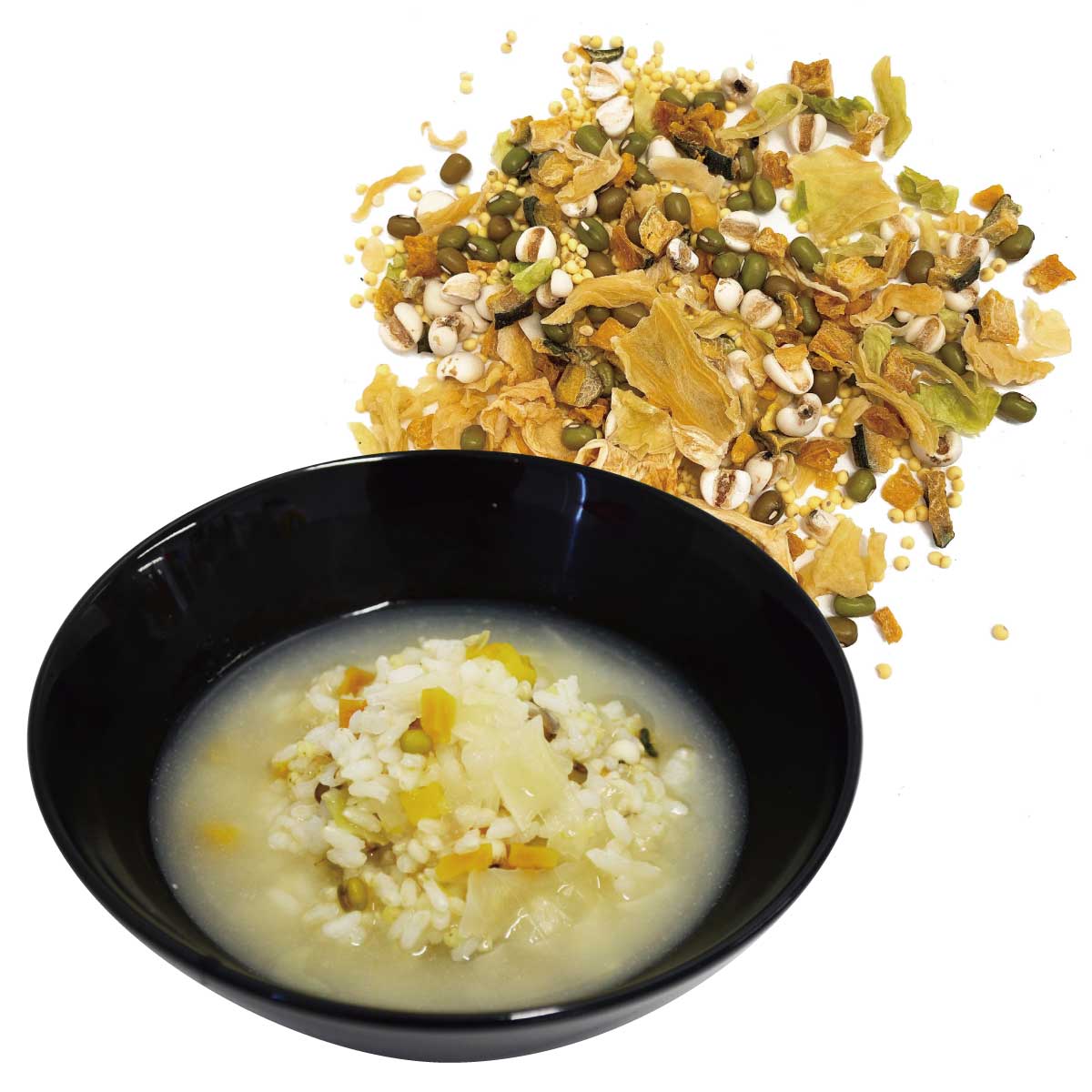 てました。雑穀・豆類は築地の豆屋から厳選し、具材の乾燥野菜も国産にこだわっています。