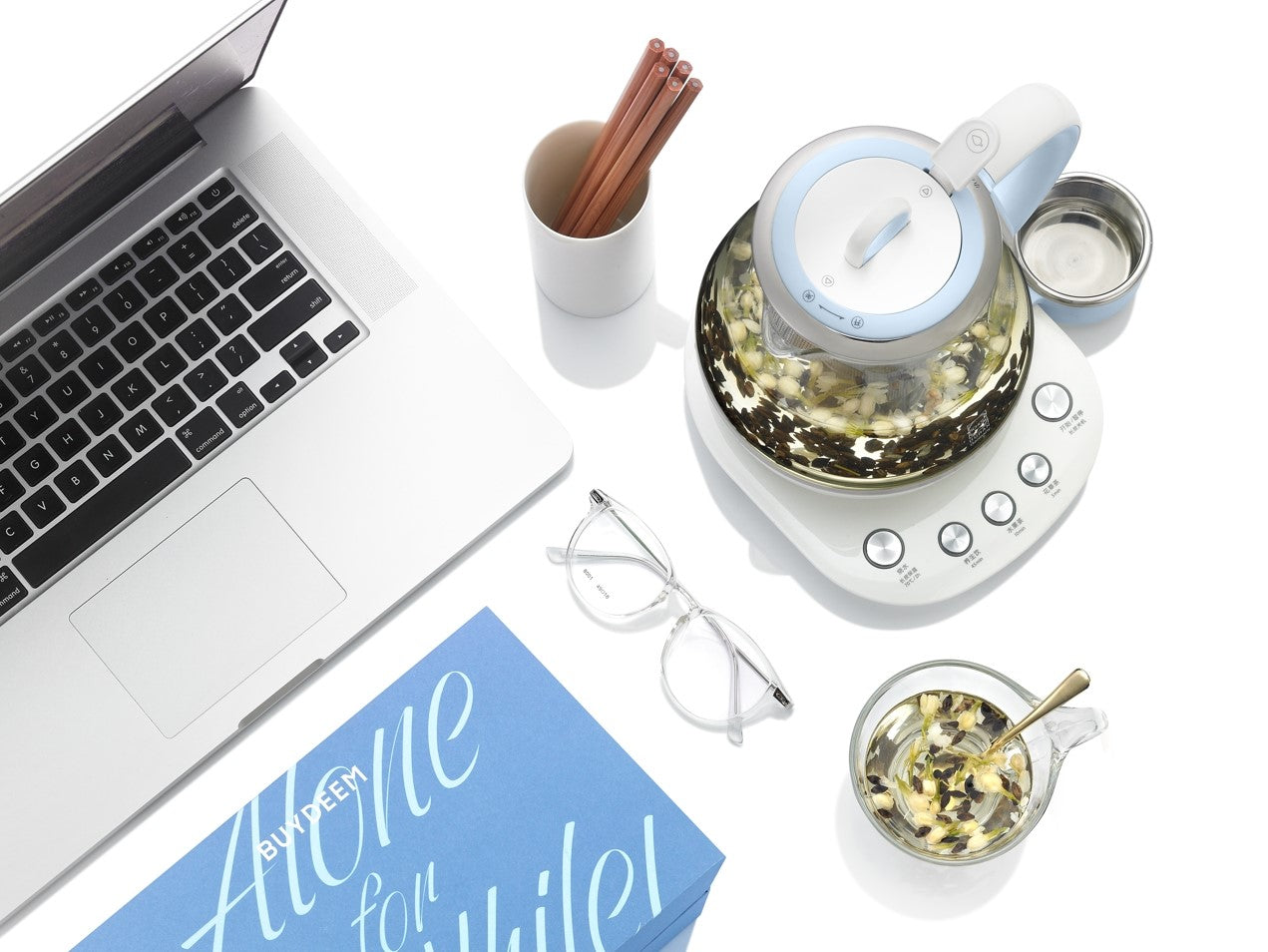 BUYDEEM薬膳ティーポットは、“とろ火”加熱の温度帯を自動制御で保つため、 漢方薬や薬膳茶などとろ火でじっくりとエキスを煮出したい時に便利です。 操作は時間ボタンとスタートボタンのツータッチのみ。あとはアラームが鳴るまでほったらかしでOKです。 その場を離れられるので時間を有効活用できます。 また、とろみの少ない食材を使ったスープや少量の煮込み料理での利用も可。